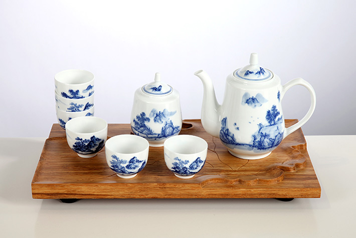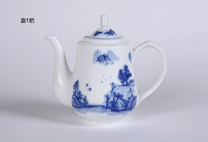 8頭手繪青花綠茶具山高水長