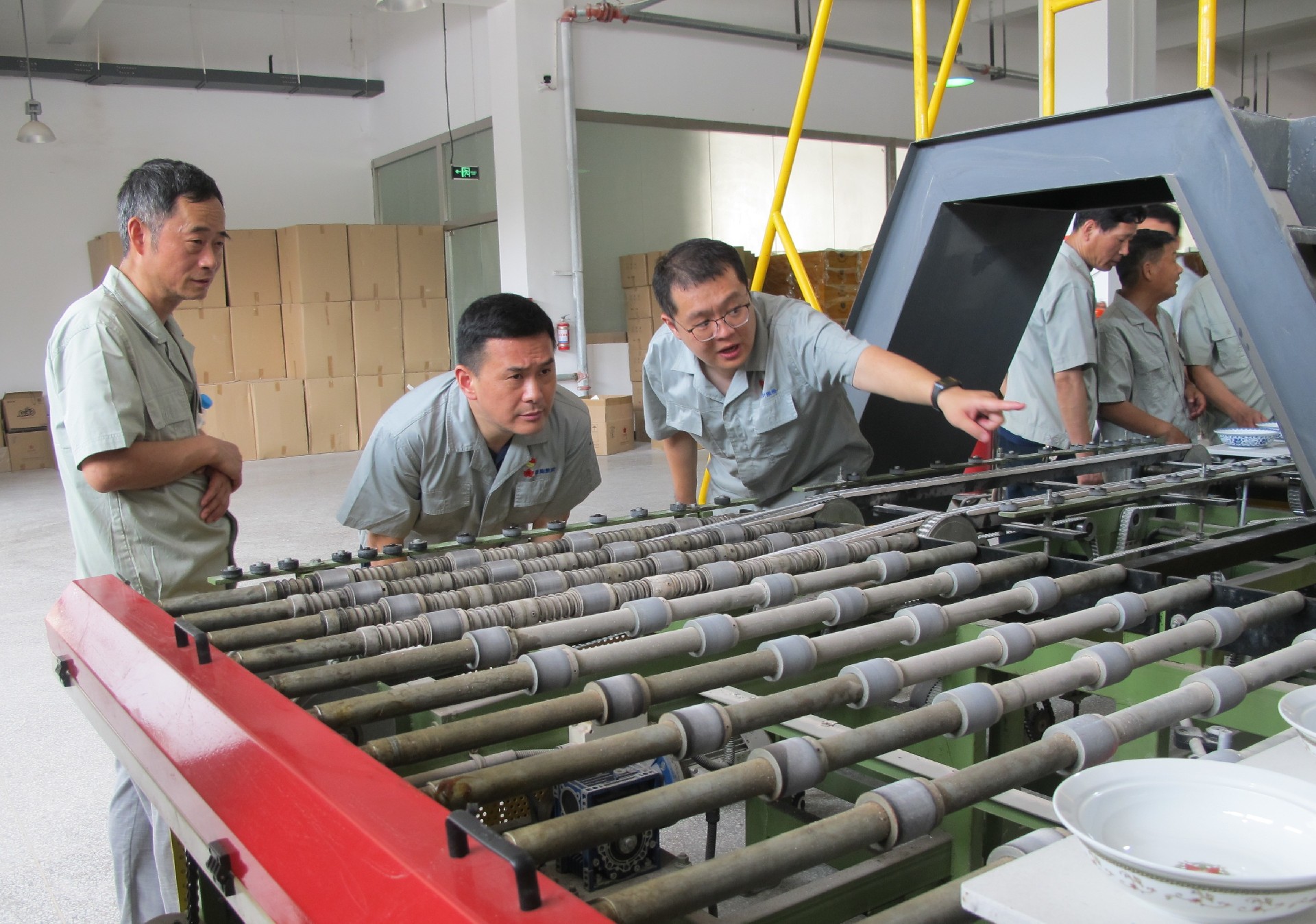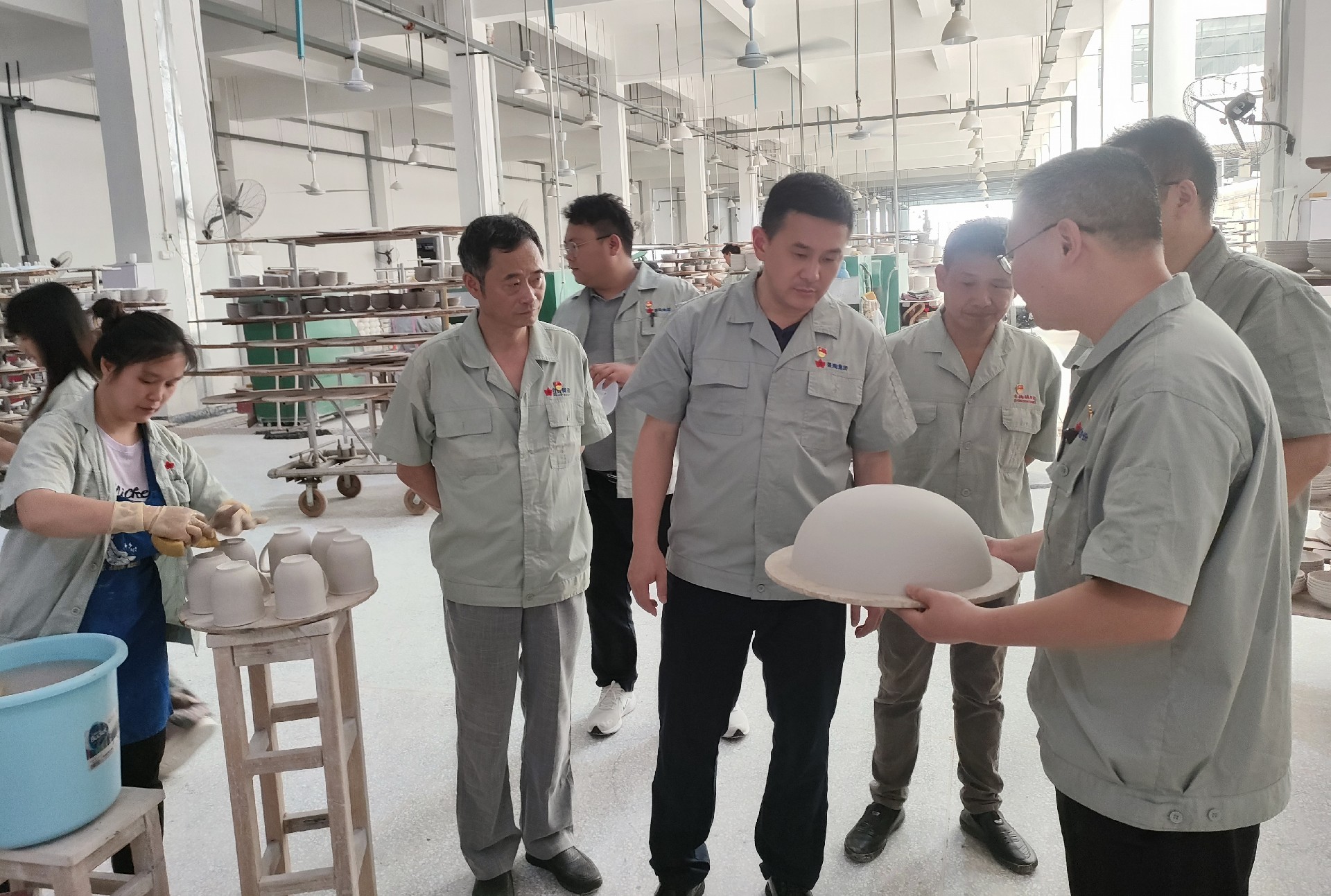 在生產車間調研中,鄧景揚先后下到各個生產工序現(xiàn)場,從原料、模型、成型、燒煉到彩繪車間,對每個工序都進行了詳細了解,重點了解了紅葉一廠的整體生產能力及現(xiàn)狀。