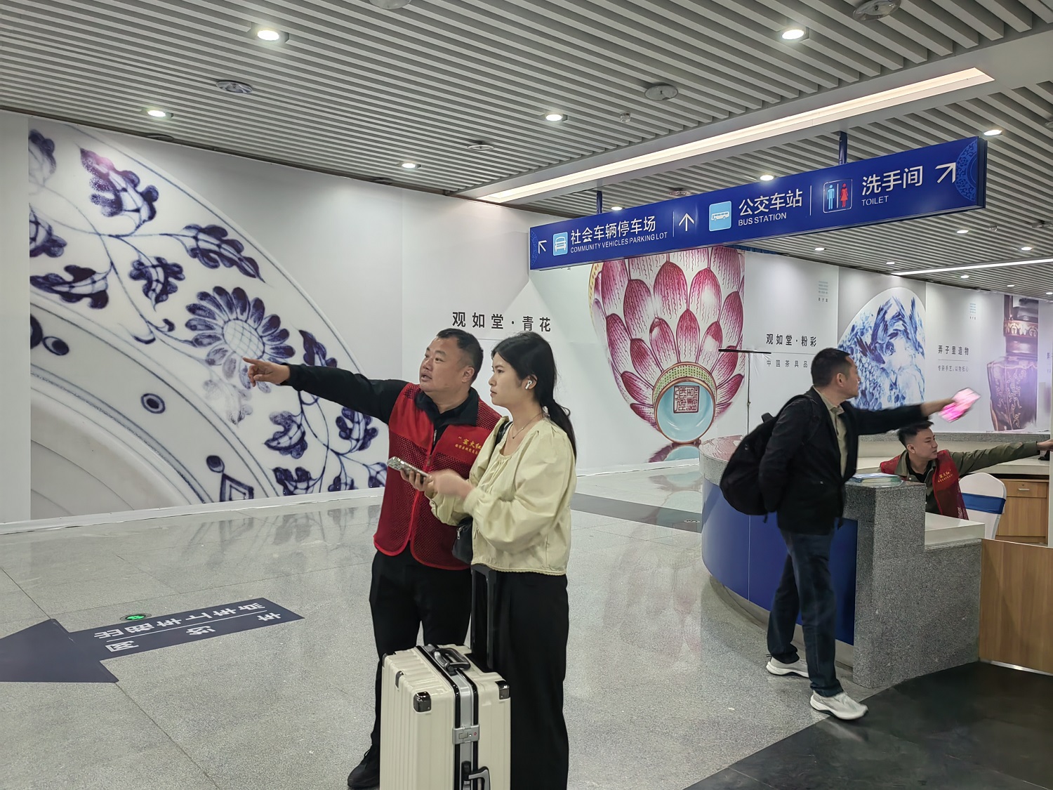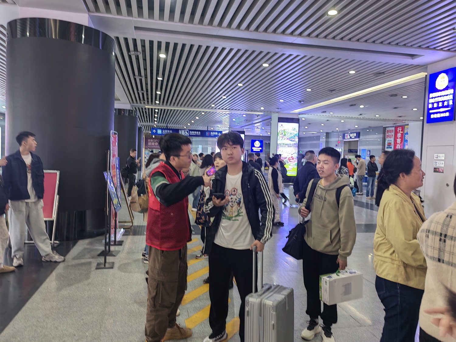 在各服務(wù)站點,志愿者們一會兒化身導(dǎo)游,一會兒化身美食家,一會兒化身行李俠……為旅客提供周到的服務(wù),旅客們紛紛點贊志愿者們熱心、舒心、暖心!