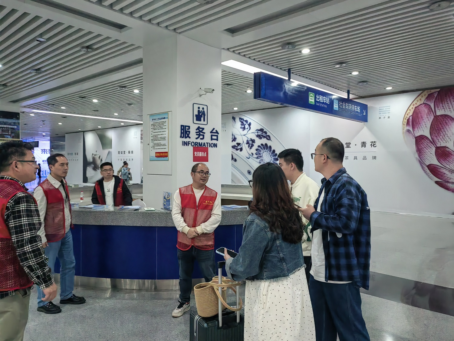 4月30日,五一假期前夕,景陶集團組織70多名黨員志愿者參加市“窯火紅”黨員志愿服務(wù)活動。他們身穿紅馬甲,忙碌穿梭在景德鎮(zhèn)北站南廣場,北廣場和羅家飛機場的旅客中,為來景游客指引路線,提行李,推介美食美景美宿,引導(dǎo)車輛有序停放等,送上熱忱暖心的服務(wù),流動的紅馬甲成為一道靚麗的“風(fēng)景線"。