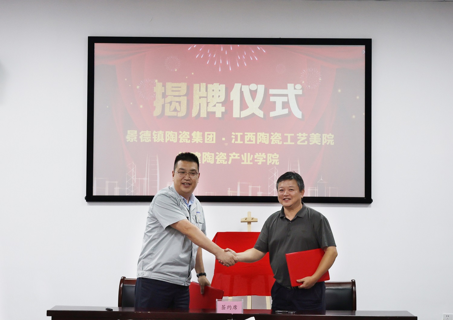為深入貫徹落實(shí)國家推進(jìn)“一體兩翼”重大戰(zhàn)略部署,更好地服務(wù)地方陶瓷產(chǎn)業(yè)發(fā)展,助推陶瓷職業(yè)教育發(fā)展。8月16日下午,在景德鎮(zhèn)陶瓷集團(tuán)行政樓一樓會議室隆重舉行江西陶瓷工藝美術(shù)職業(yè)技術(shù)學(xué)院與景德鎮(zhèn)陶瓷集團(tuán)共建陶瓷產(chǎn)業(yè)學(xué)院揭牌儀式。江西陶瓷工藝美術(shù)職業(yè)技術(shù)學(xué)院黨委書記方文龍,黨委委員、副院長朱輝球,景德鎮(zhèn)陶瓷集團(tuán)黨委書記、董事長鄧景揚(yáng),黨委副書記、總經(jīng)理邢浩,黨委委員、工會主席鄧必春,黨委委員胡軼,黨委委員、副總經(jīng)理王小勤出席揭牌儀式。學(xué)院及企業(yè)相關(guān)部門負(fù)責(zé)人參加。